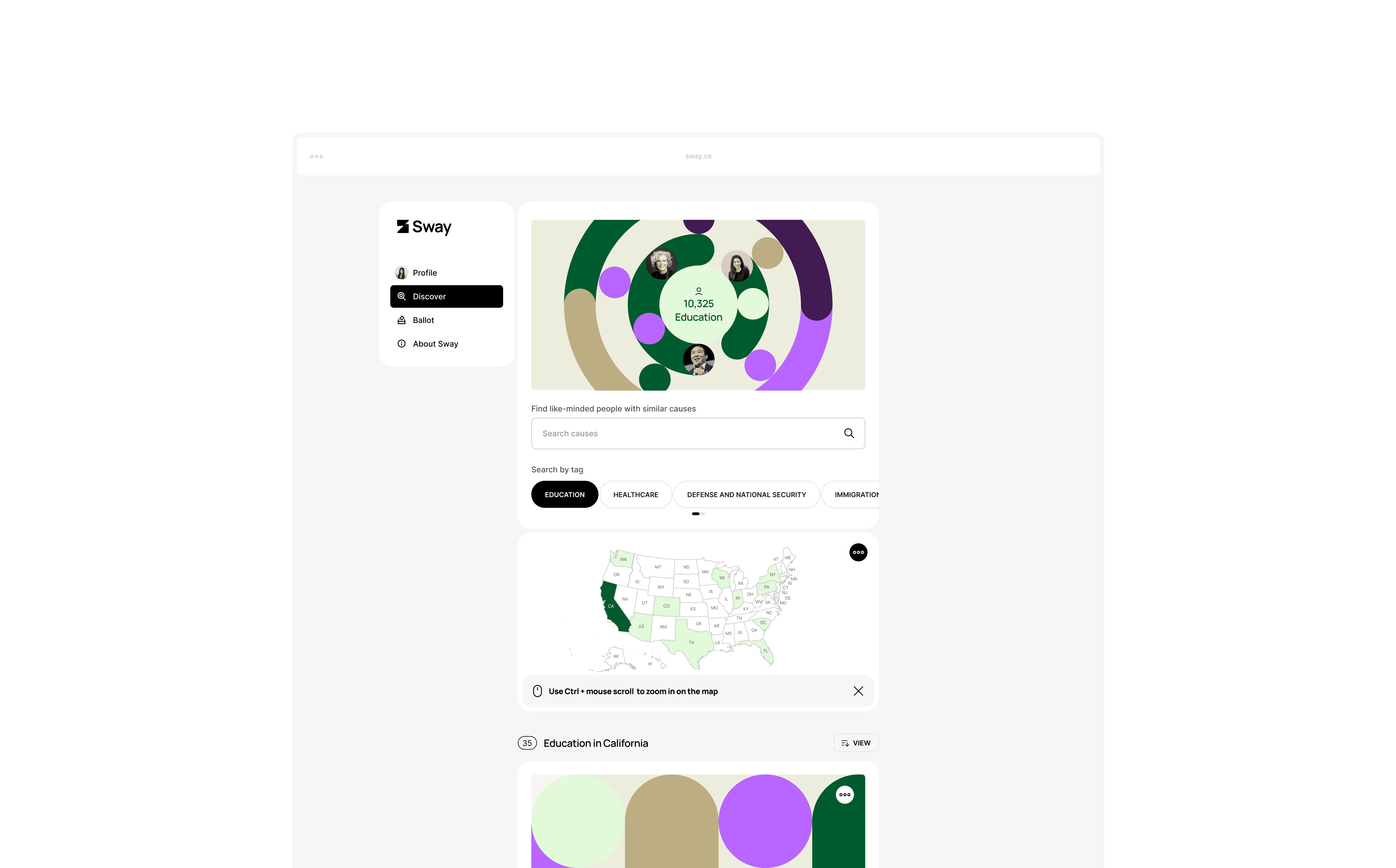Extending Sway’s identity into the product - a Bay Area platform reimagining democracy